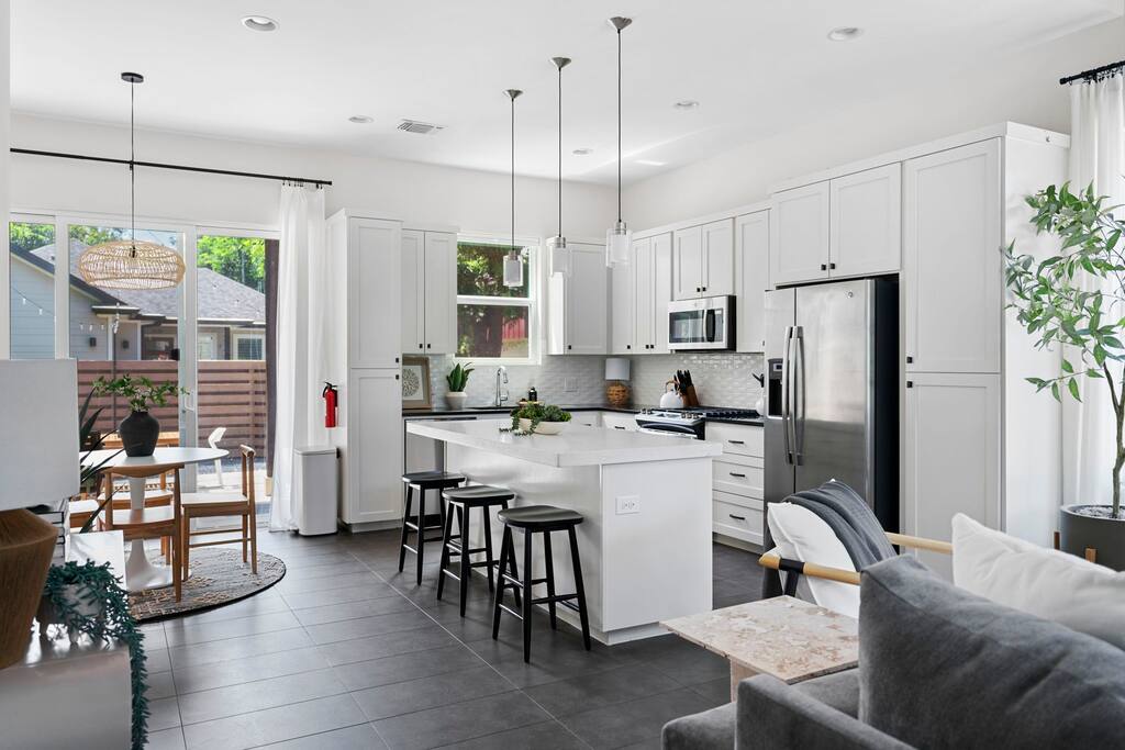 The spacious kitchen is perfect for creating decadent feasts while socializing with friends and family. You’ll find everything you’ll need to whip up some food, including stainless steel appliances, spacious countertops, and plenty of cabinet space.